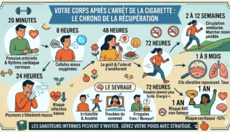 Le conseil d’ami : Ne menez pas tous les combats de front. Priorisez l’arrêt du tabac. Une fois vos poumons dégagés, vous aurez bien plus d’énergie pour bouger et réguler votre poids naturellement.